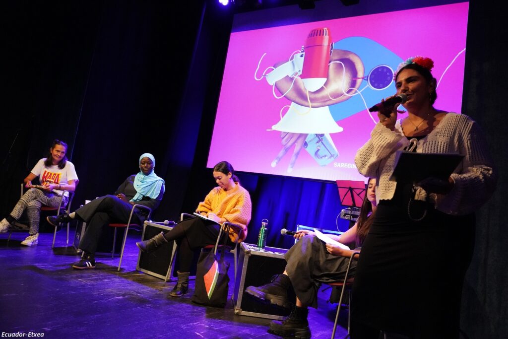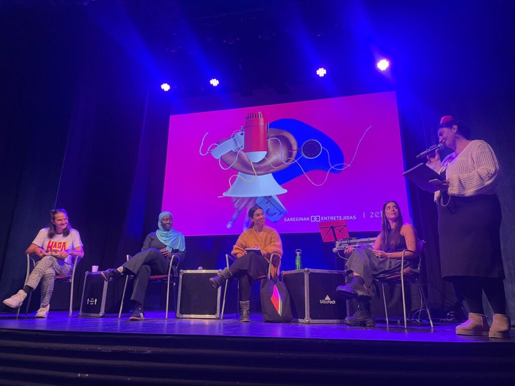 En la mesa-coloquio “Tejiendo la palabra”, tomaron parte Jatou Fall —Afro feminista, Panafricanista, Presidenta de la asociación sociocultural Devenir y participante de Parabolikak en 2024— y Vero Van Horenbeke —activista en Extinction Rebellion Bizkaia y arquitecta de paisaje en Luberri. Lorna Biermann (artista sonora, editora de Alharaca Radio Feminista y Creadora de Wikisoinuak) y Sara Gimeno (gestora cultural y fotógrafa de Euskadi). Entre todas, abrieron un diálogo sincero sobre la potencia transformadora de la palabra, el lugar de las mujeres en la creación y las conexiones invisibles que se tejen entre experiencias, lenguajes y territorios.